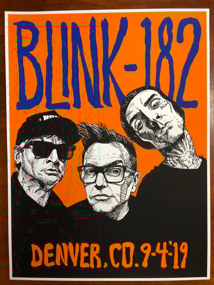 Blink 182 Sep 4 2019 Denver 18 X 24 Silk Screen Concert Poster Pepsi Center Chris Shary